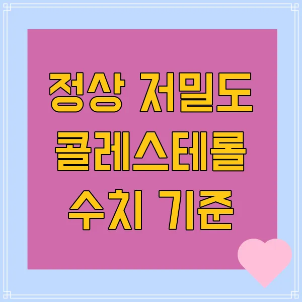 저밀도 콜레스테롤, 즉 LDL 콜레스테롤은 흔히 ‘나쁜’ 콜레스테롤로 알려져 있어요. 이 LDL 수치가 높아지면 심혈관 질환의 위험이 증가하니까, 항상 체크하는 것이 중요하답니다! 일반적으로, 정상 저밀도 콜레스테롤의 기준 수치는 다음과 같습니다.