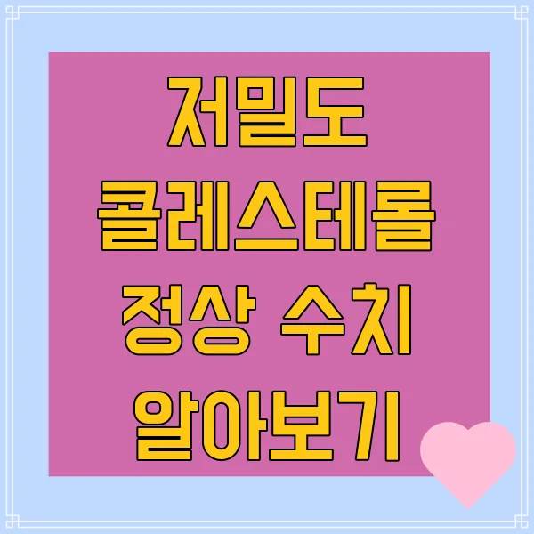 여기서 잠깐, 저밀도 콜레스테롤이 왜 중요한지 알아볼까요? LDL 콜레스테롤은 체내에서 과도하게 쌓이게 되면 동맥벽에 침착되어 염증을 유발하고, 심하면 혈관이 막히기까지 하거든요. 😱 그렇기 때문에 정기적으로 검사받고, 자신의 수치를 잘 알고 있는 것이 중요해요!